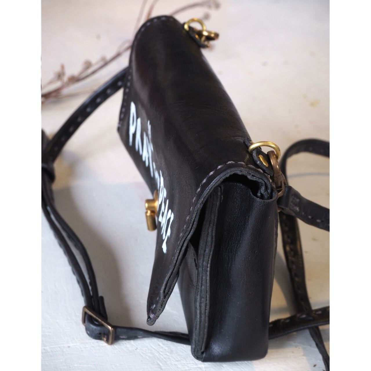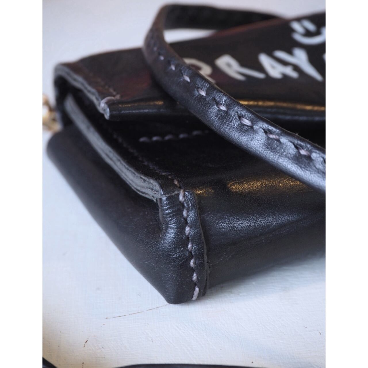 ブラックの革にホワイトで文字を大胆に描き入れ、カッコよくスタイリッシュに仕上げました。