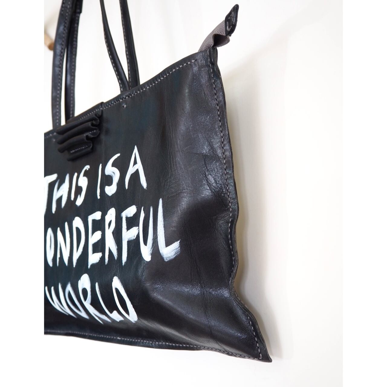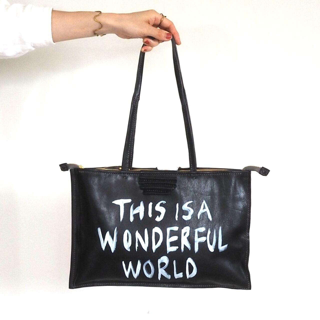 手描きで大胆に描き入れた“This is a wonderful world” 。