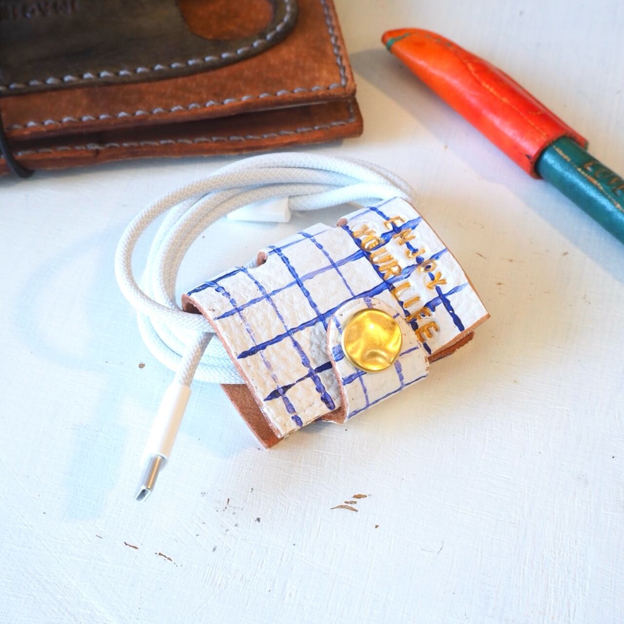 一点一点着色し、カラフルポップなコードホルダーを作りました。