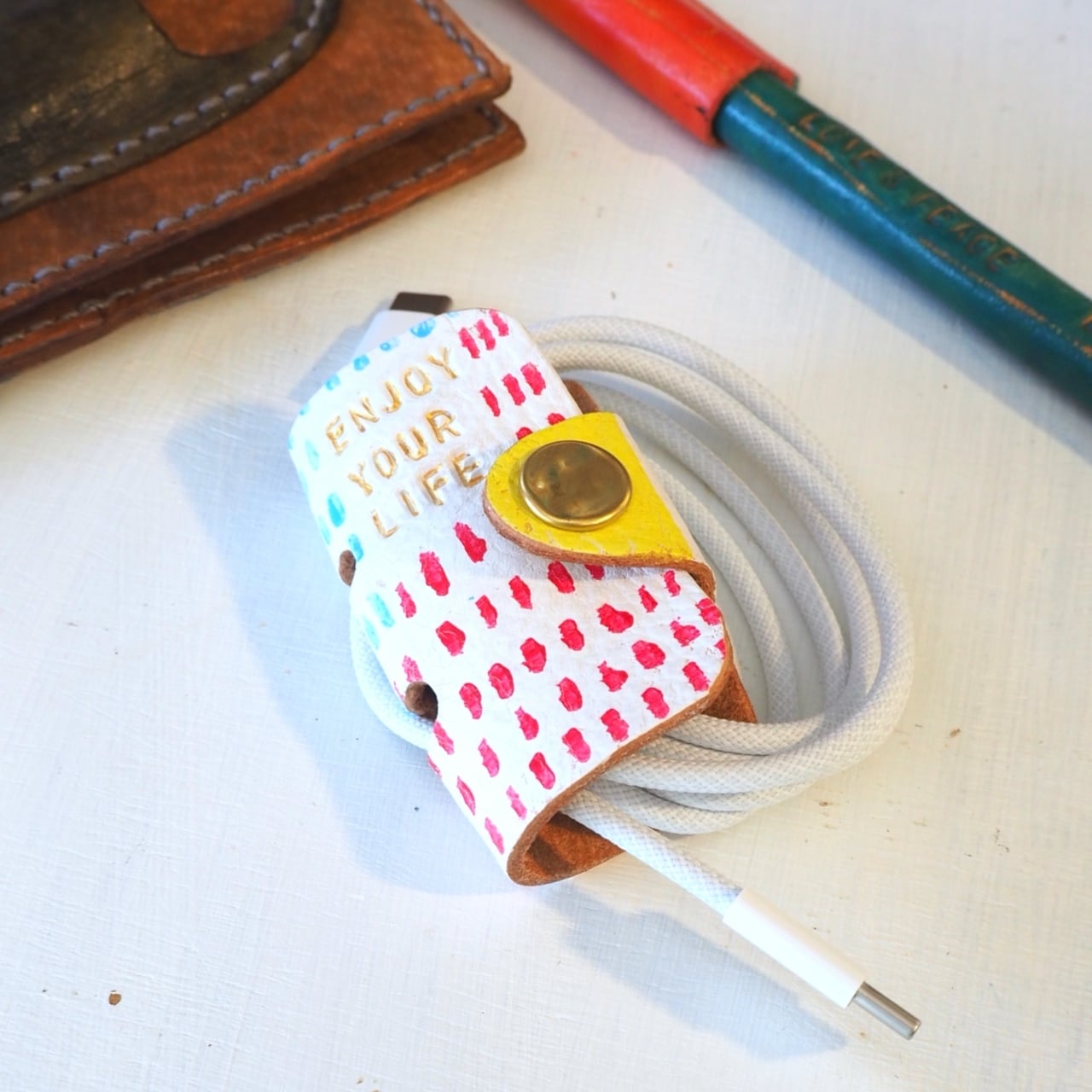 一点一点着色し、カラフルポップなコードホルダーを作りました。