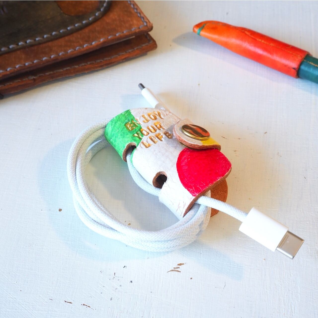 一点一点着色し、カラフルポップなコードホルダーを作りました。