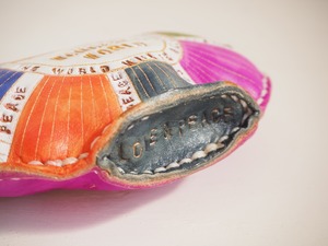 ・豚革は裏面に染料が点々と染み出ている場合があります。これは豚革の特徴である「毛穴」から染み出るためです。