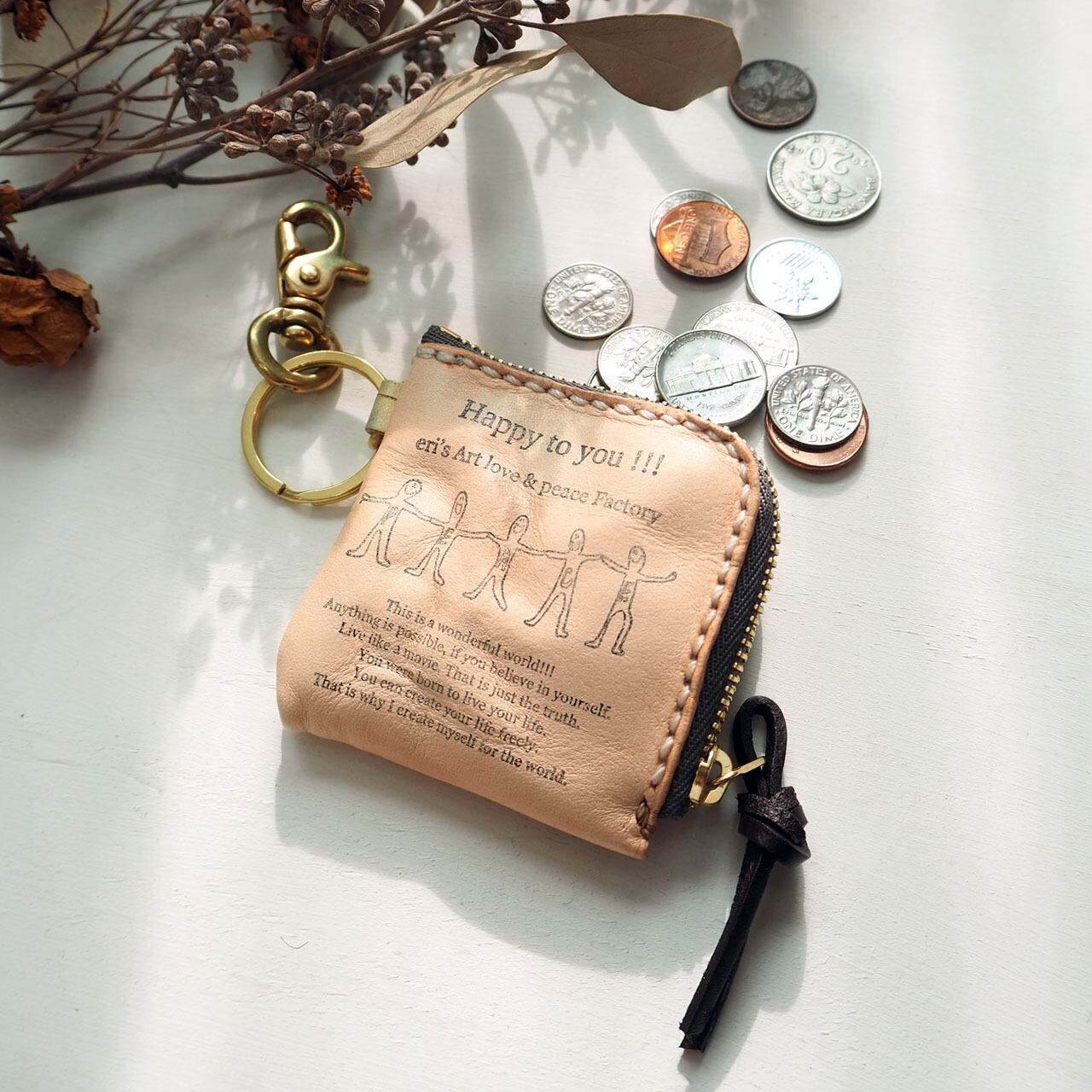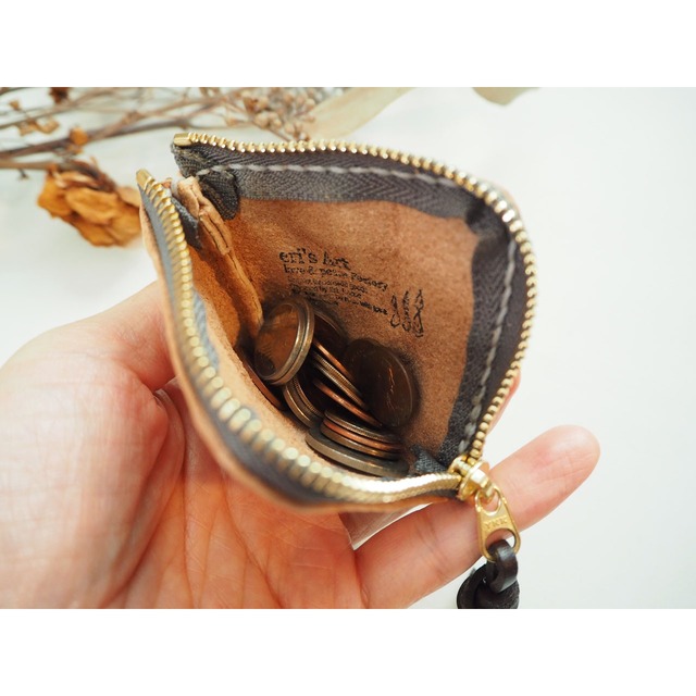 経年変化を存分に楽しめるナチュラルなままのヌメ革を使ったシンプル仕上げの小銭入れ。