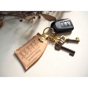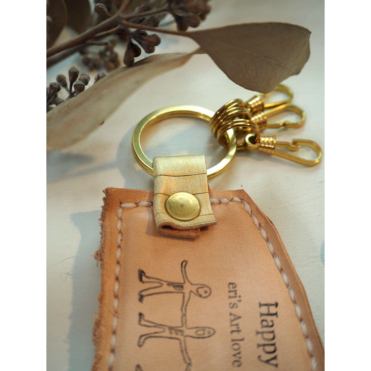 経年変化を存分に楽しめるナチュラルなままのヌメ革を使ったシンプル仕上げのキーリング。