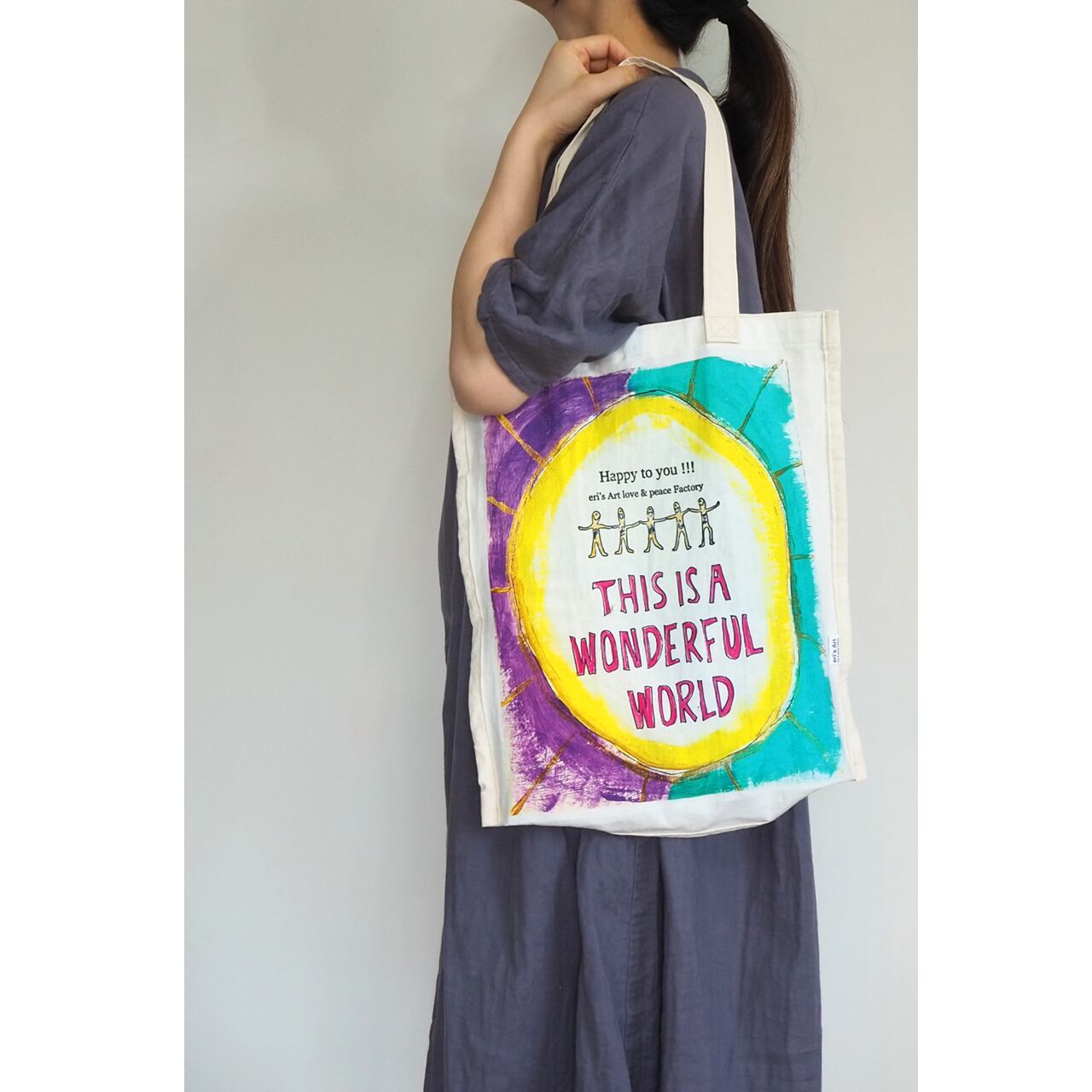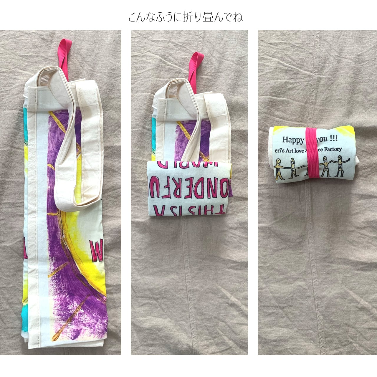 オリジナルイラストをプリントしたオリジナル生地でエコバッグを作りました。