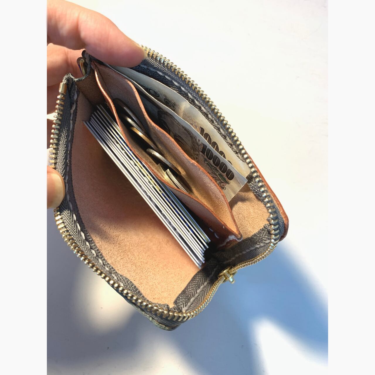 ラウンドファスナータイプのコンパクトなお財布を作りました。