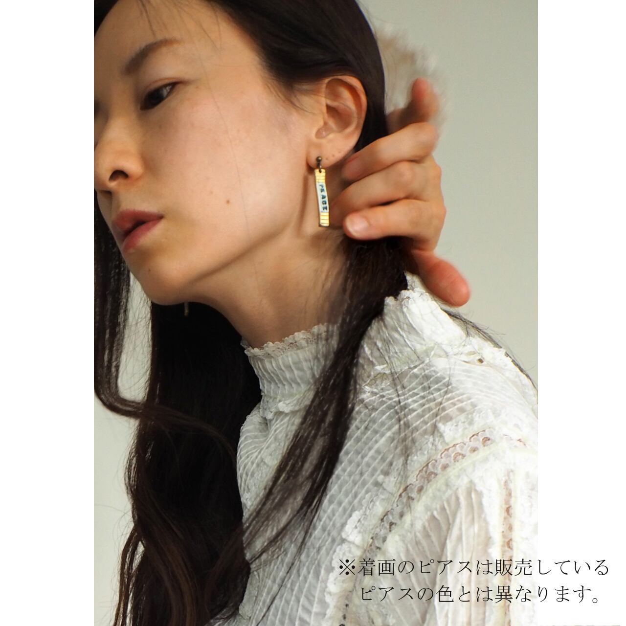 WHITE+GOLDピアス(金具変更可) -bluegray- Lep-051