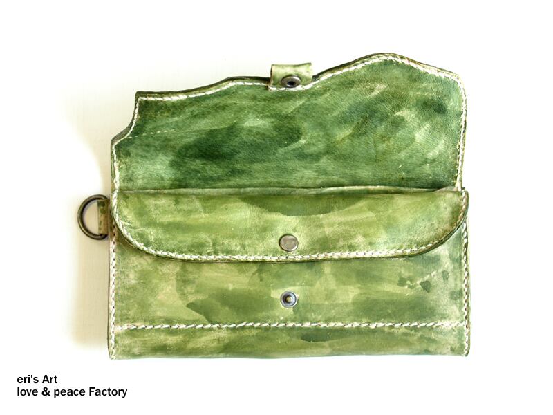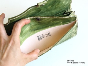 【サンプル品SALE】長財布01[モスグリーン/糸 ホワイト]タッセル付き OD-W-03-01