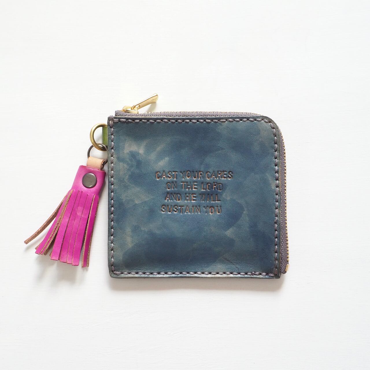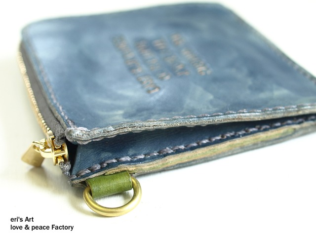 【サンプル品SALE】平たい財布[ブルーグレー×モスグリーン/糸 グレー]タッセル付き OD-W-01-04