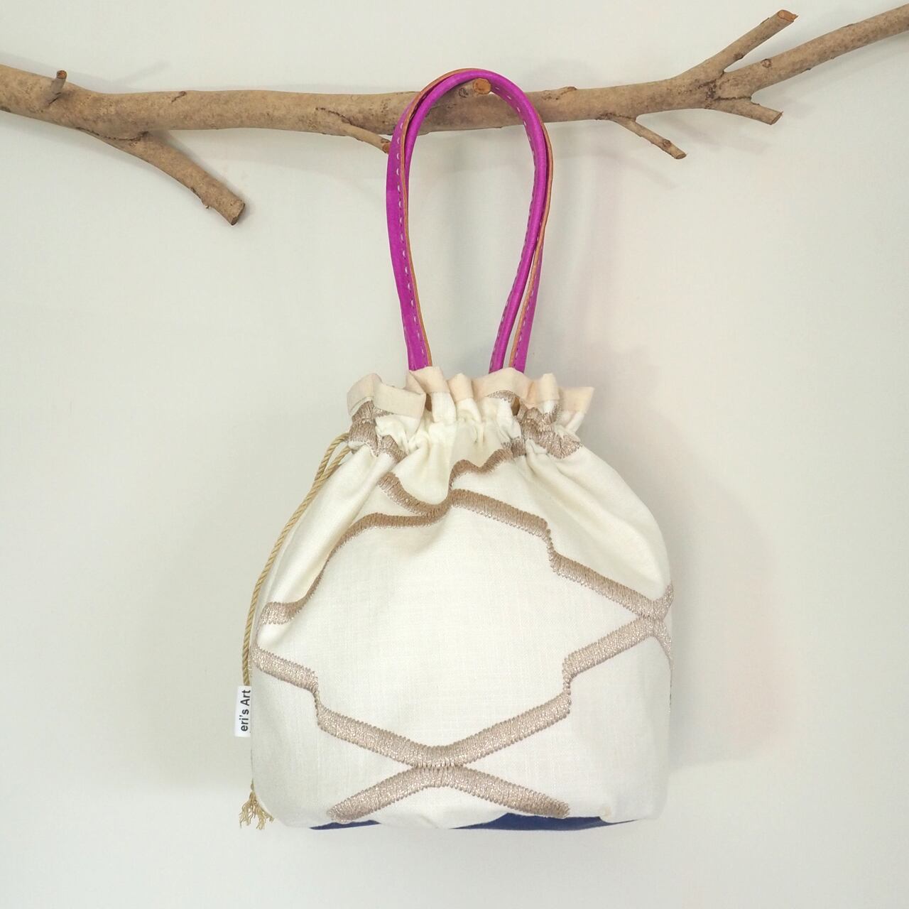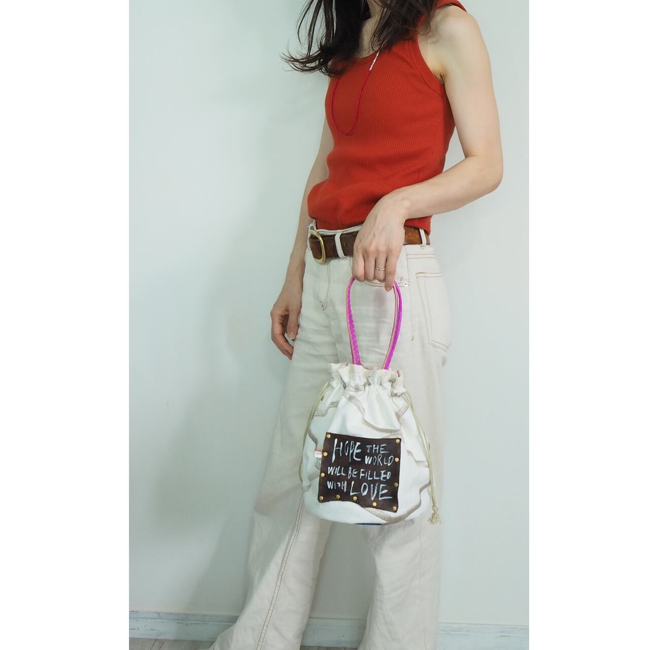 コロンとしたフォルムがかわいい丸底巾着バッグ。