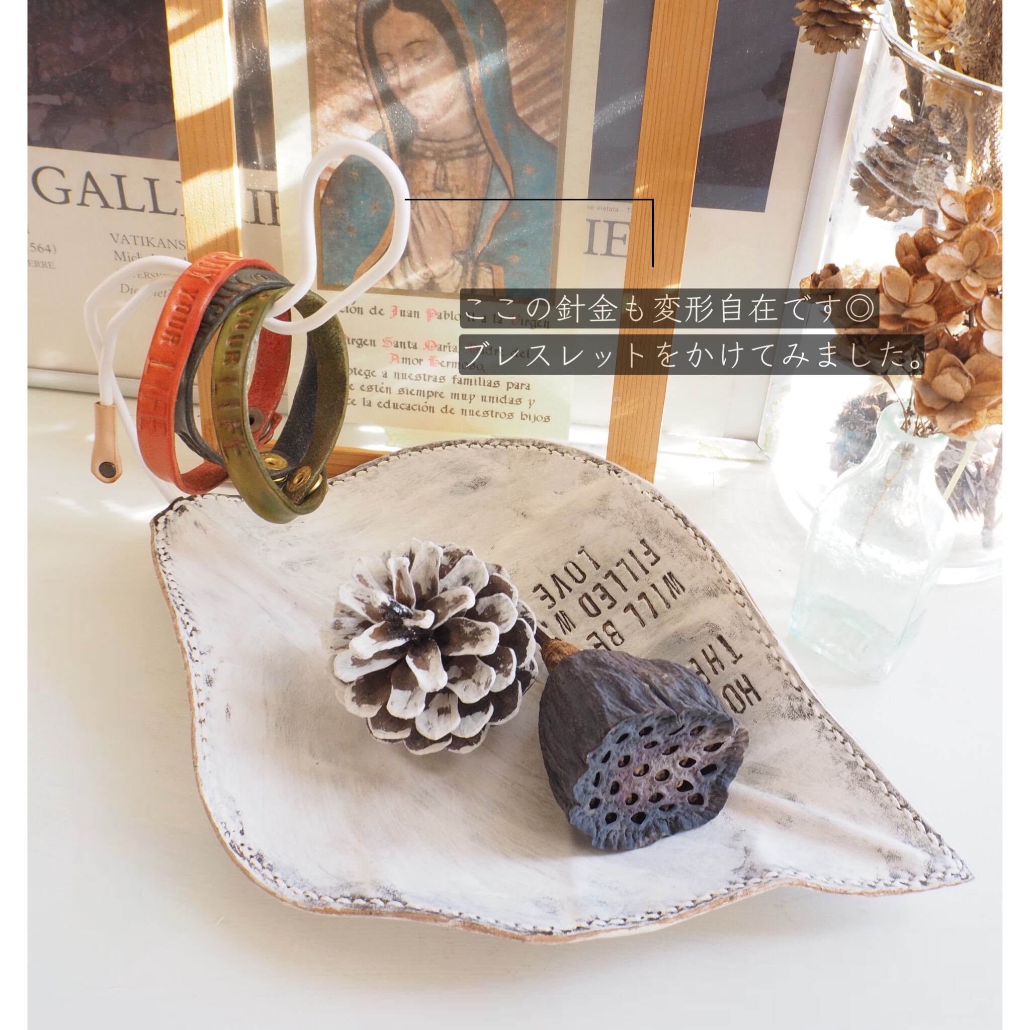 ブレスレットを引っ掛けてアクセサリートレーにしてみたり。
