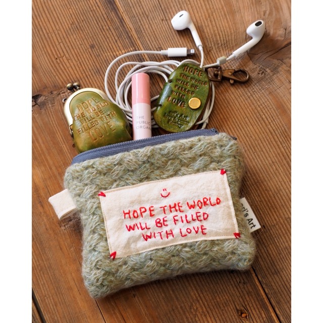 ふかふかとしたリサイクルウール生地で作っていますので衝撃から守りたいアクセサリー等を入れるのにもおすすめ。