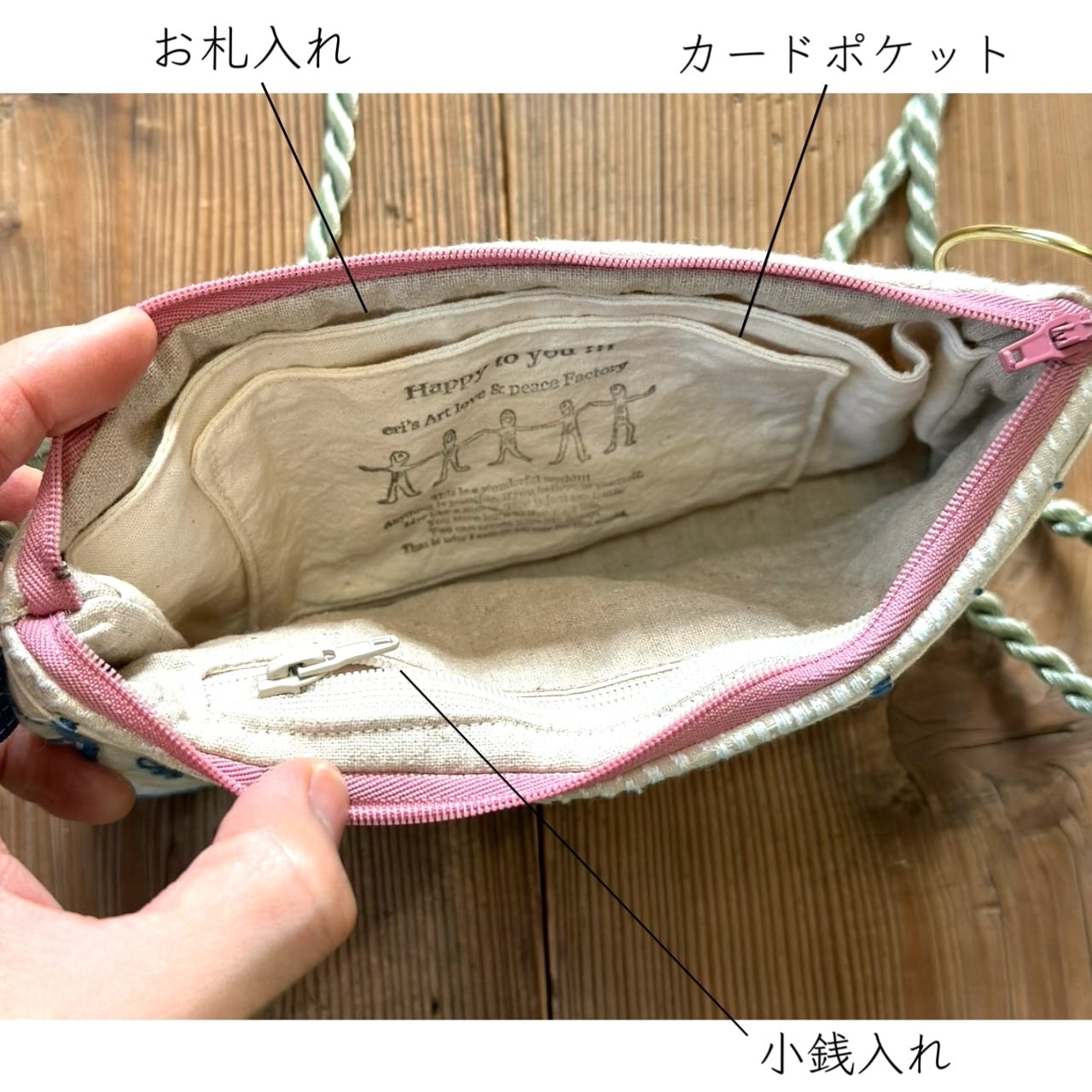 お財布とショルダー紐の連結に使用している真鍮金具は華奢に見えますがとてもしっかりしているのでご安心下さいね◎
