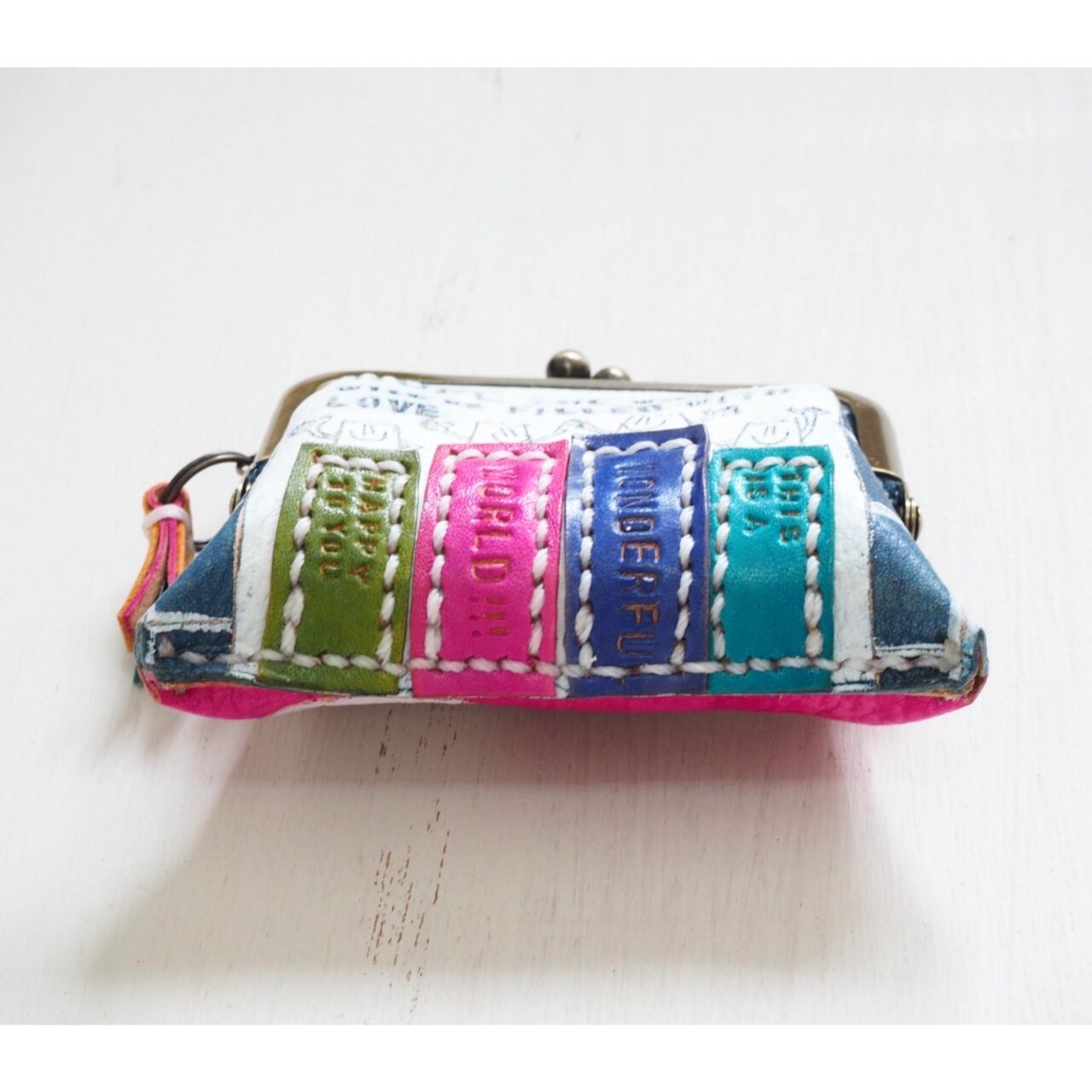 くたっと柔らかな牛革で小さながま口ポーチを作りました。