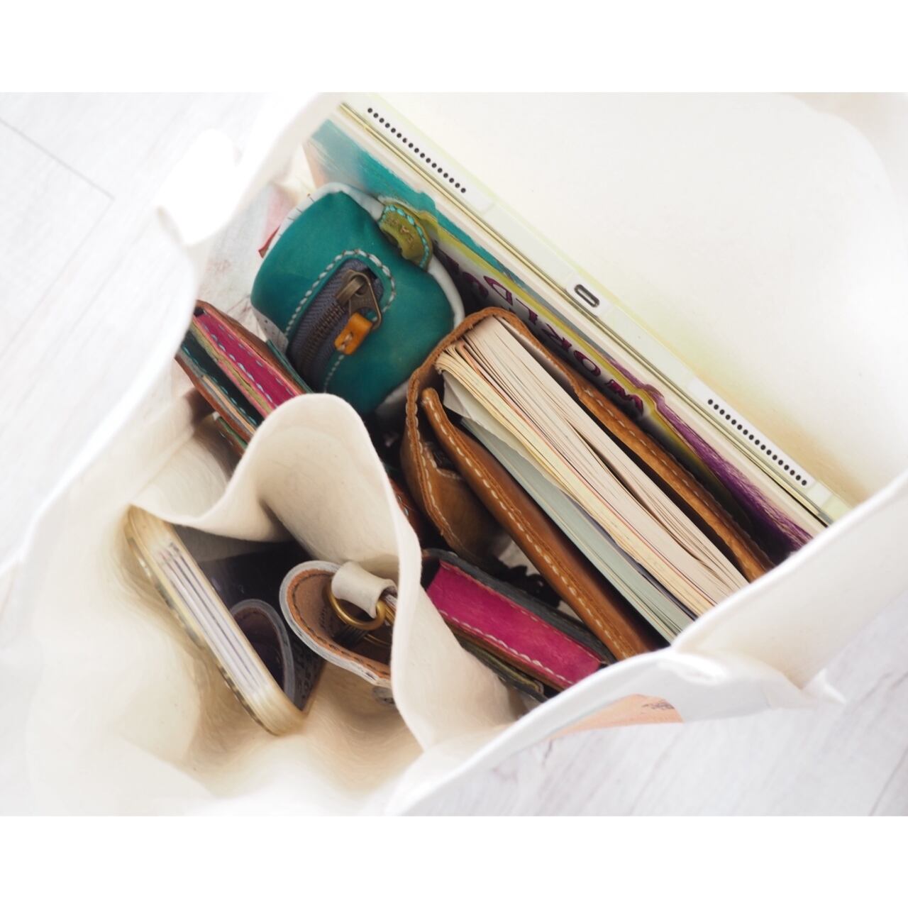 ぺらっとした生地ですが、見た目以上に丈夫なのでたくさん荷物を入れても大丈夫。